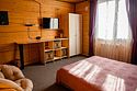 Шале также предоставляет постельное белье, полотенца 2 шт., зубной набор и одноразовые тапочки для каждого гостя, а для самых маленьких гостей предусмотрены детская кроватка и стульчик.