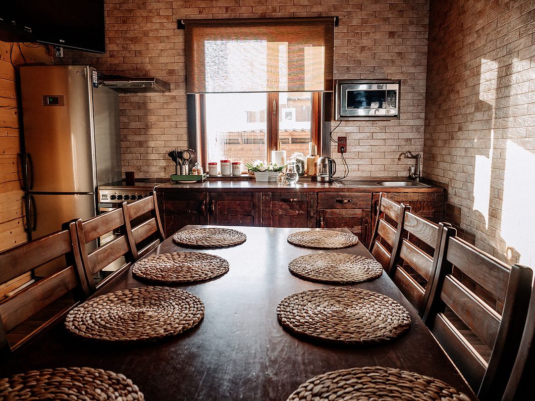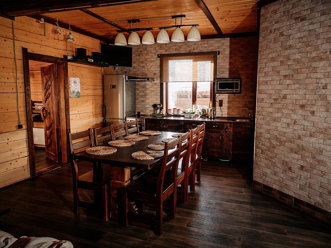 Деревянное шале представляет собой двухэтажный уютный дом общей площадью 200 м², который идеально подходит для комфортного пребывания. Внутри вас встретит просторная прихожая и отдельное помещение с вентиляцией для сушки одежды и снаряжения. Шале оборудовано большой гостиной с кухонной и обеденной зонами, а также зоной для отдыха — здесь удобно проводить время в кругу семьи и друзей.