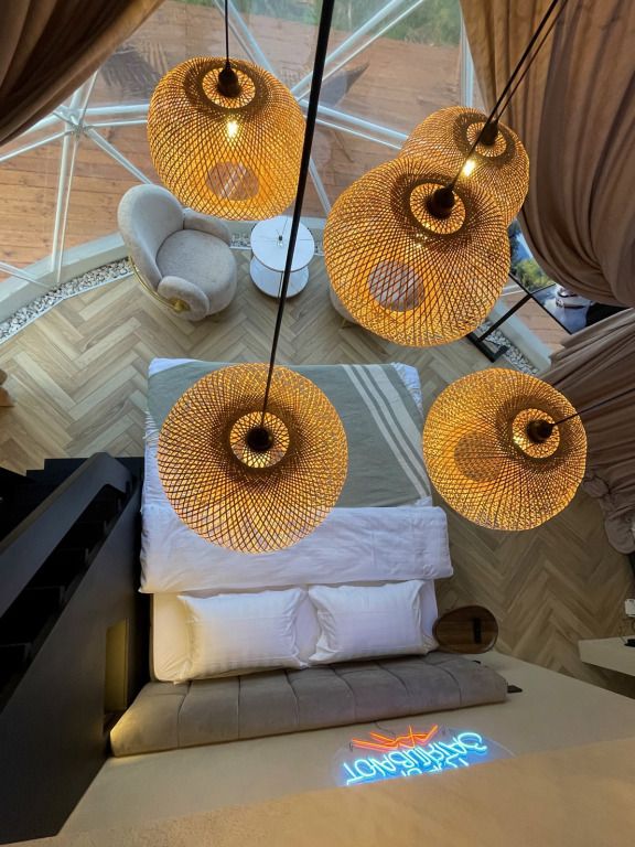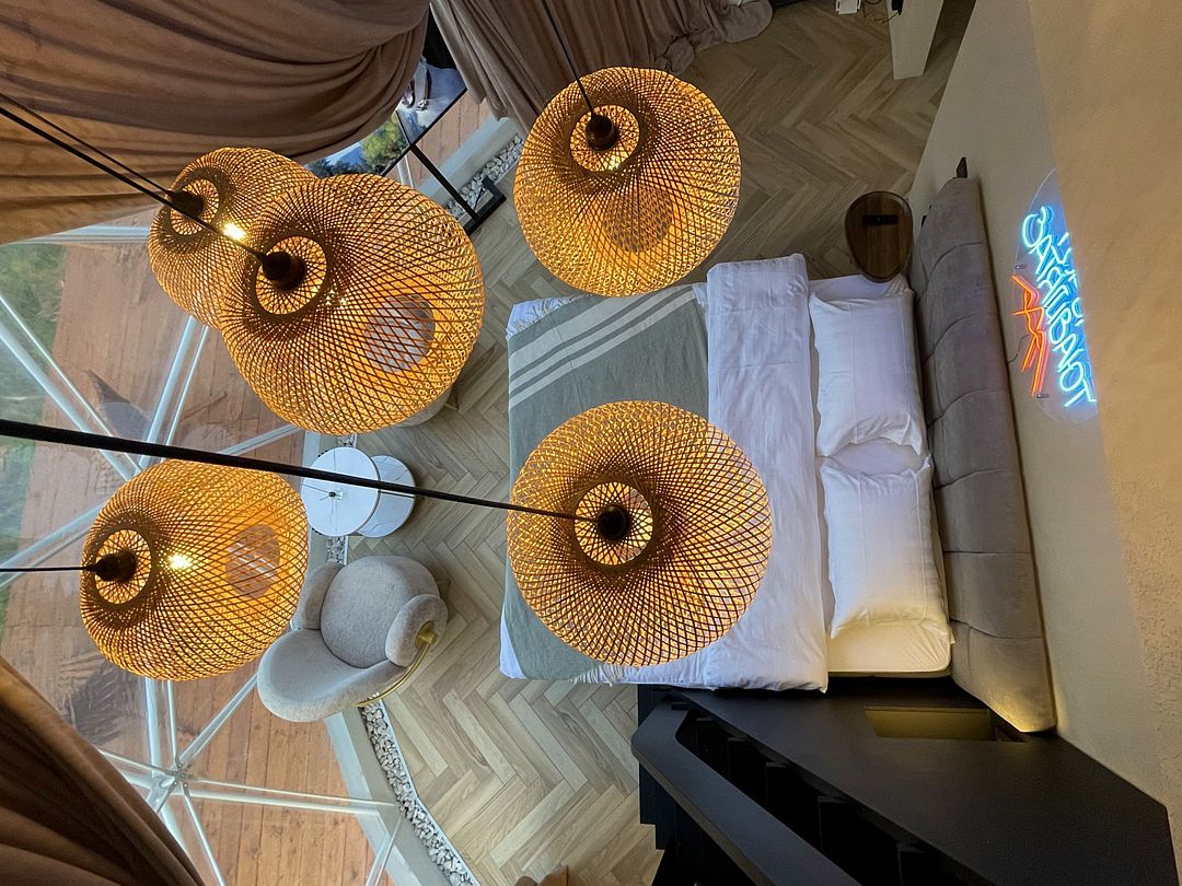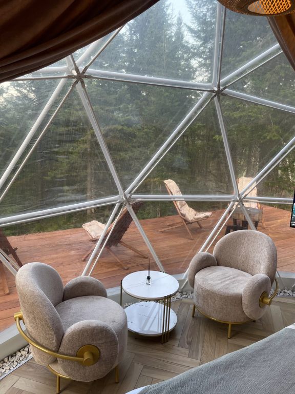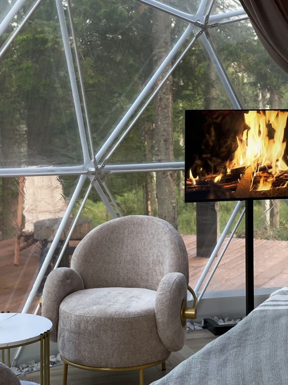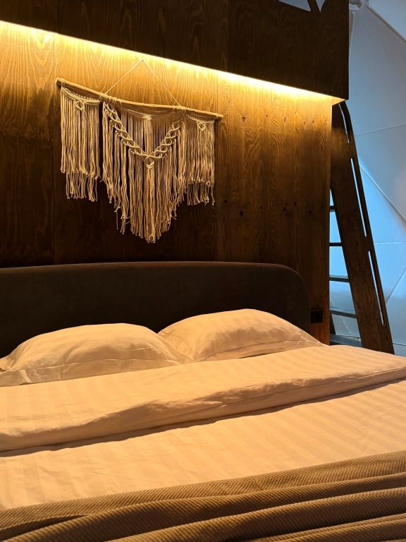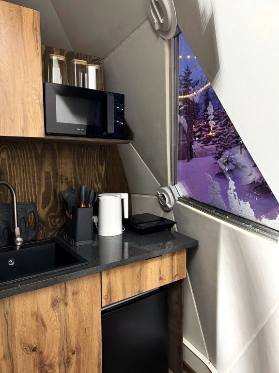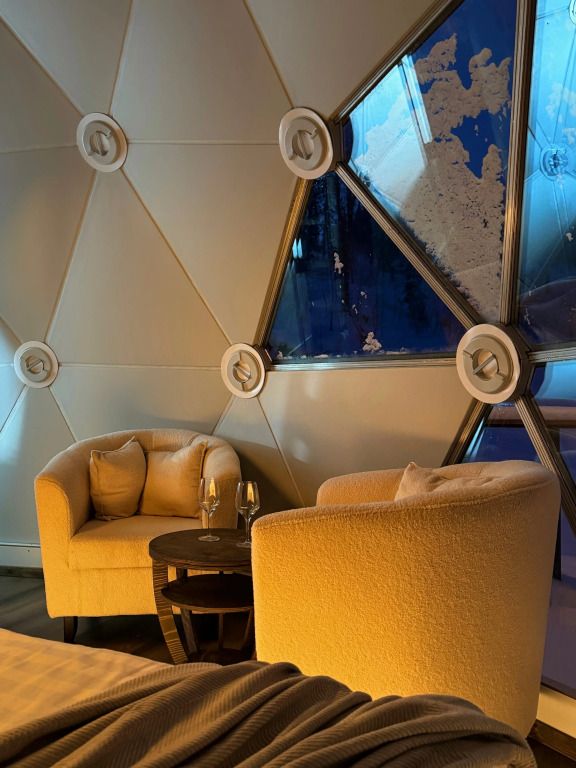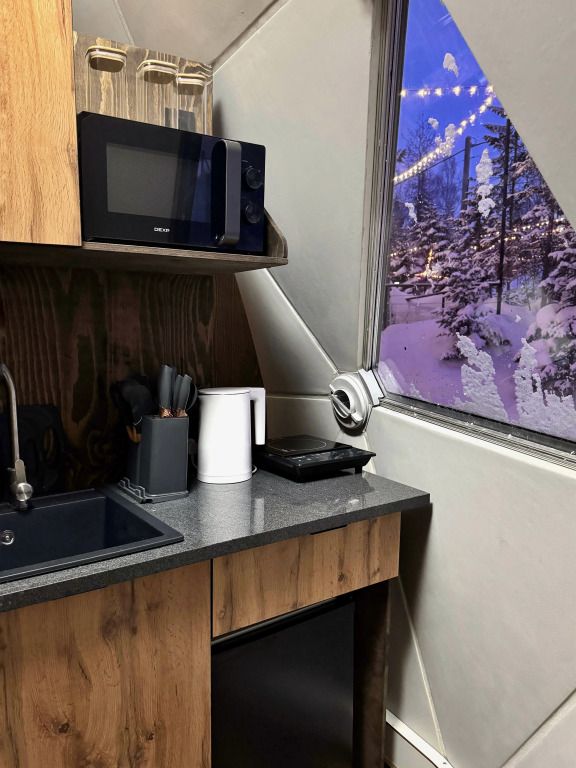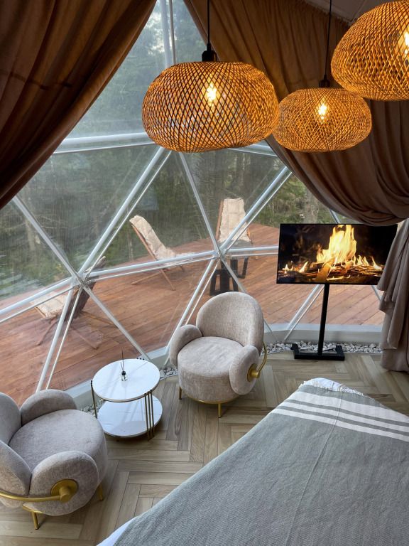 Отель, включающий в себя несколько уютных купольных домов, разместился всего в 5 минутах езды от горнолыжных подъемников. Комплекс находится вдали от городской суеты, среди живописной сибирской природы, поэтому отлично подойдет для отдыха и релакса в окружении леса и гор. Каждый купольный дом – это сочетание современного стиля и природной эстетики. В домах предусмотрено все, что нужно для проживания – теплый пол, кондиционер, удобные двуспальные кровати на первом и втором ярусе, оборудованная мини-кухня с посудой и плитой, персональный санузел с душевой кабиной. Перед каждым домом организована уютная терраса с креслами и гриль-зоной.