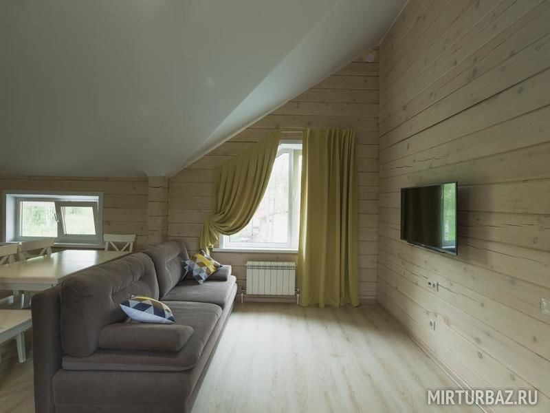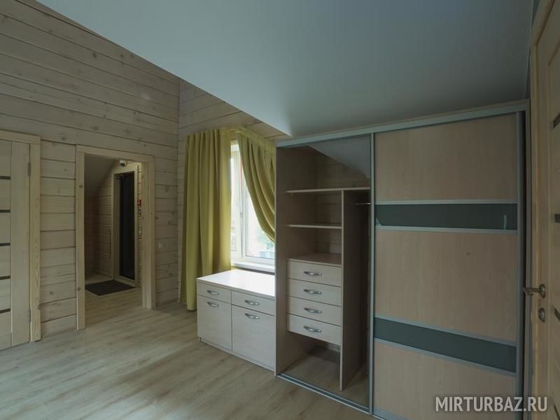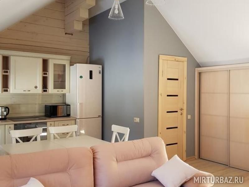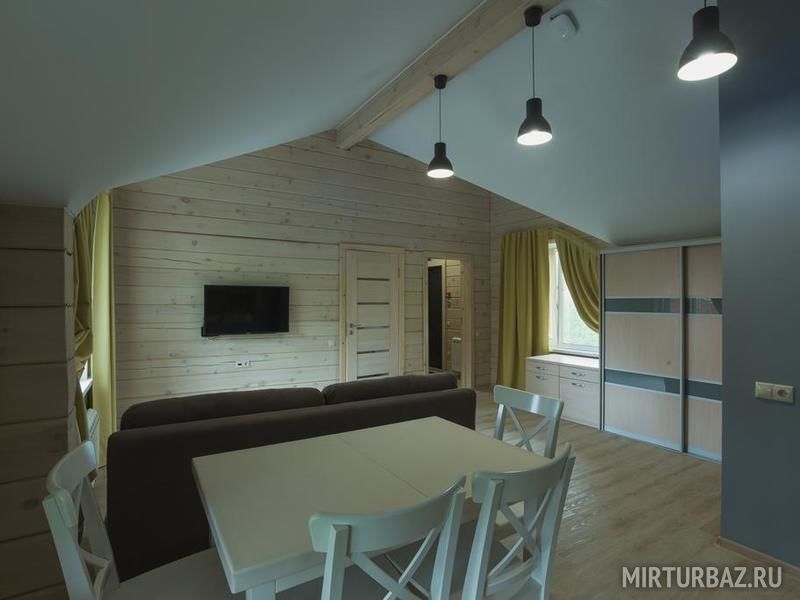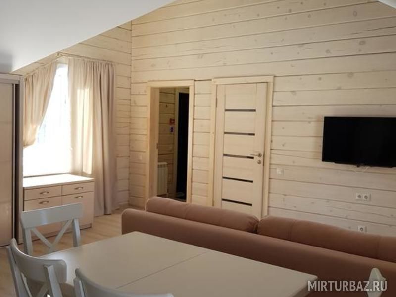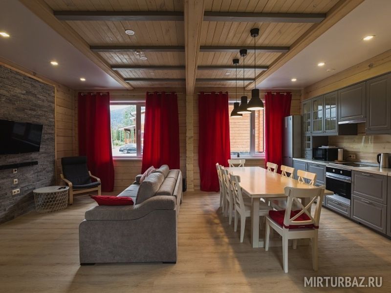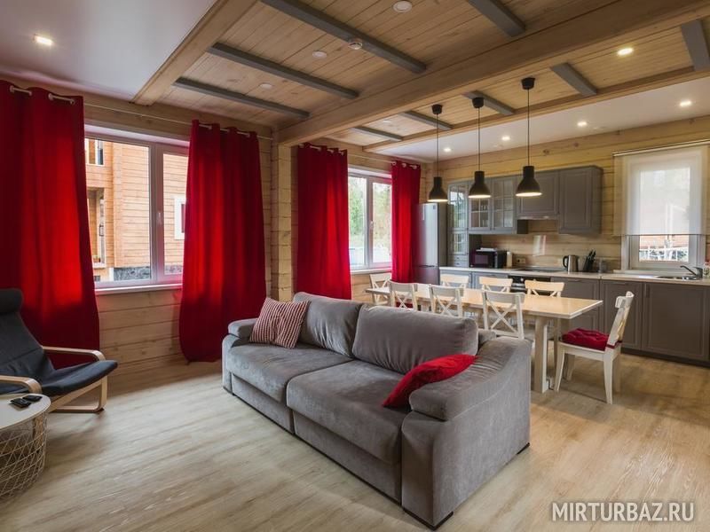 Возможность размещения до 10 человек в каждом доме. Для компании 20 человек, дома объединяются, открыванием смежной двери в гостинной.