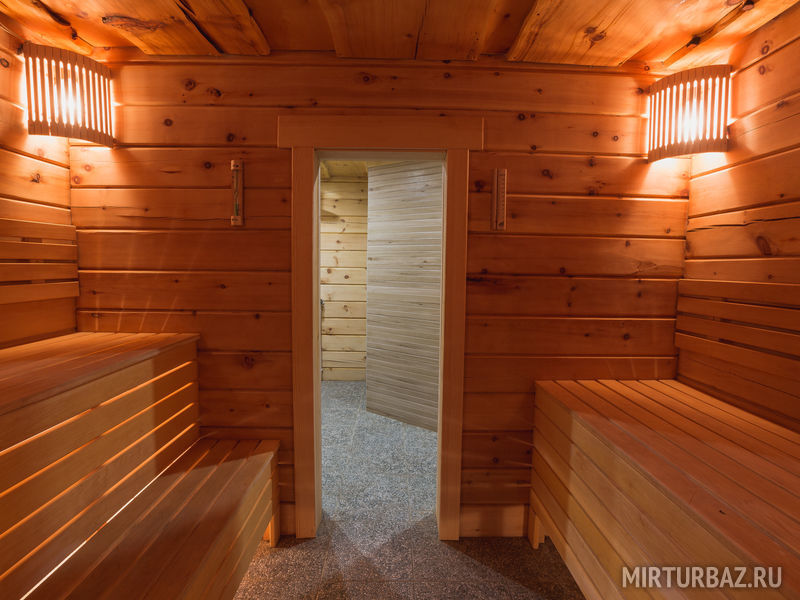 В парной вместительные полки для большой компании и безопасное расположение печки! Что очень важно нашим маленьким гостям.