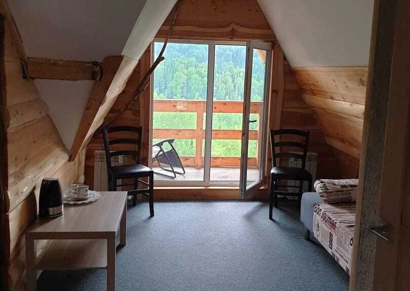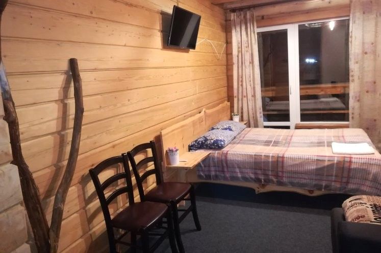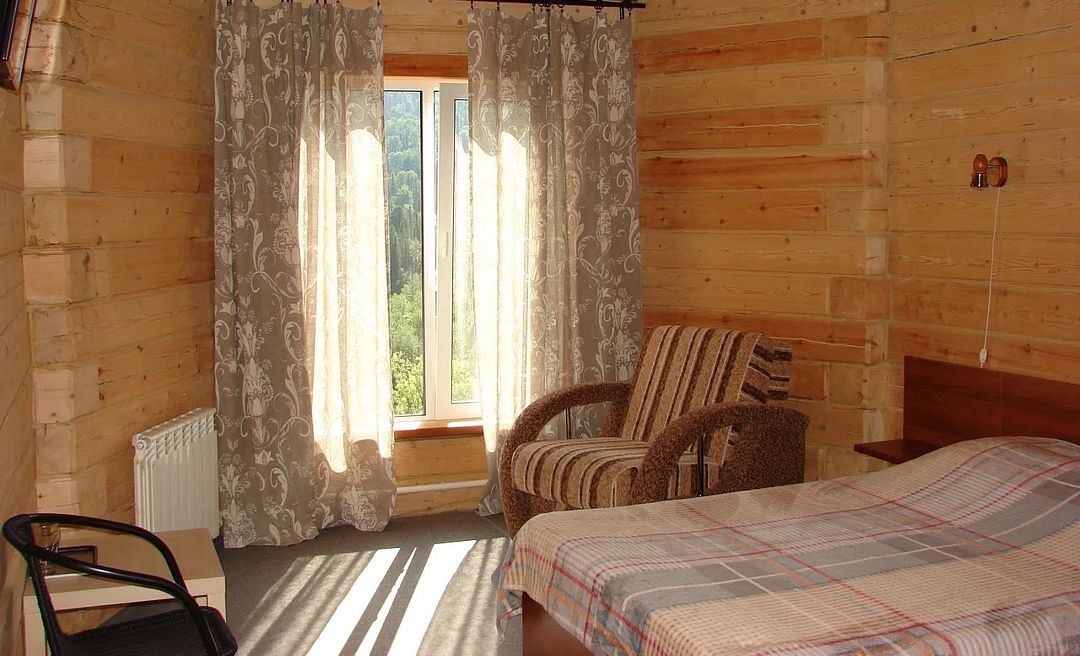 Корпус отеля представляет собой одно 2-этажное здание, выполненное из бруса, и двухэтажный отдельно стоящий коттедж из натурального кедра. В основном корпусе расположено 4 комфортабельных номера, оснащенных необходимой мебелью, ТВ и персональным санузлом с душем. В коттедже – оборудованная кухня, караоке, гостиная и кухня на первом этаже, две спальни – на второй этаже.