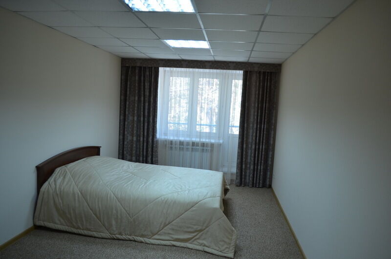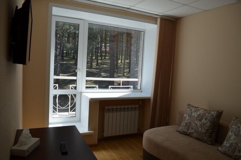 Номер "Люкс" - один 2-х комнатный просторный номер. В спальной комнате - двухспальная кровать, в гостиной - диван.