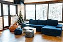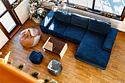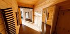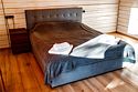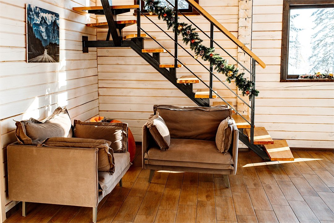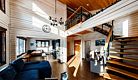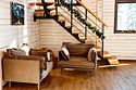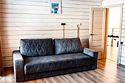 Гостевой дом представляет собой деревянный 2-этажный коттедж из бруса с большими панорамными окнами и балконом. Интерьер выполнен в современном стиле с акцентом на детали и текстиль. В распоряжении гостей 4 спальни, два санузла, полностью оборудованная кухня с плитой и посудомоечной машиной, просторная гостиная с диваном, креслами и вторым светом.