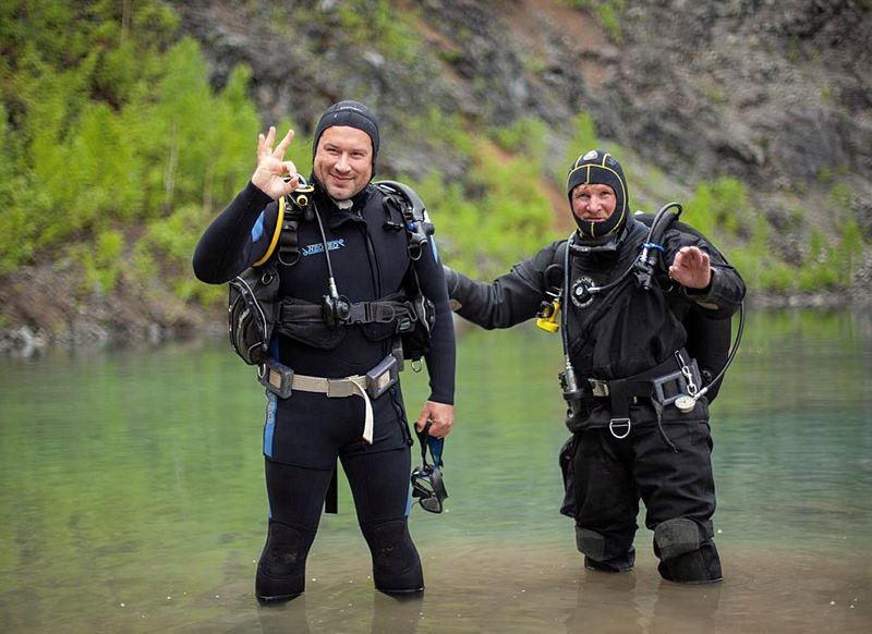 Пробное погружение в сухом костюме с подводной связью — с инструктором можно будет общаться даже находясь под водой. Услуга предоставляется круглый год, в том числе и в холодное время года.