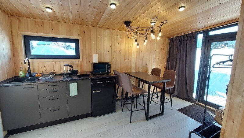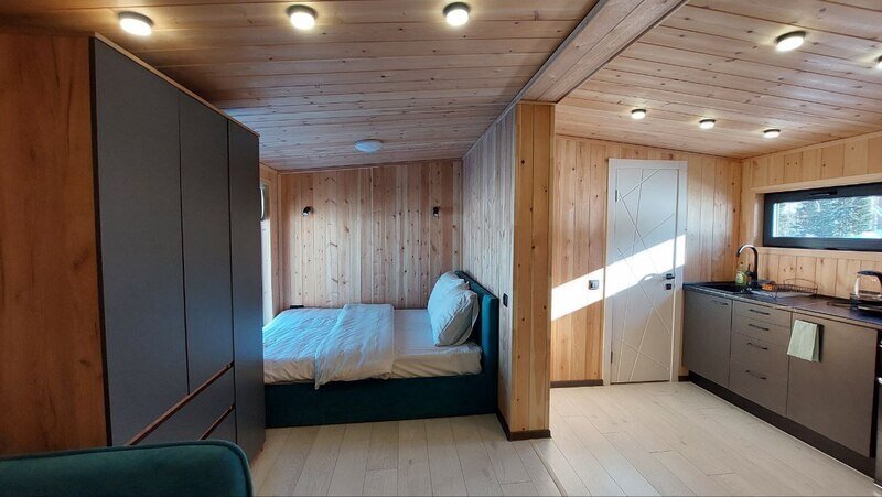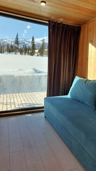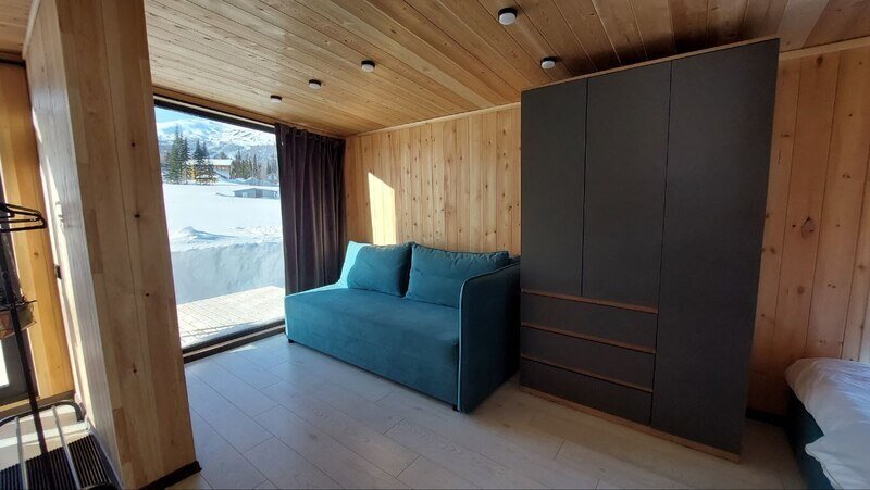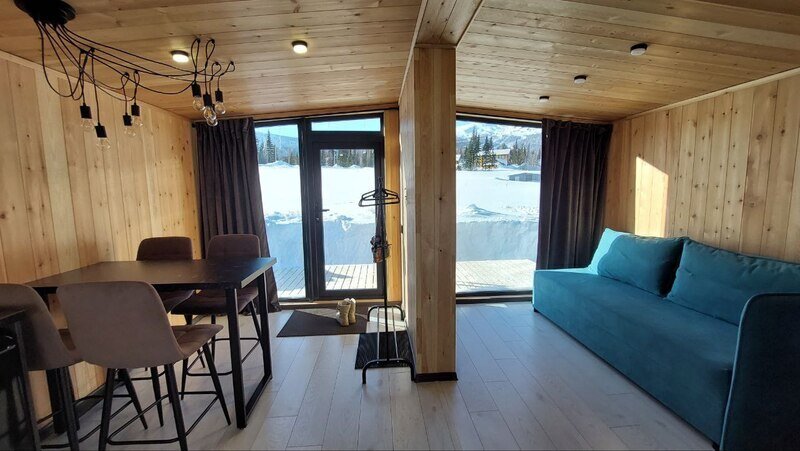 Уютный и стильный дом «Модуль 1» находится в поселке Шерегеш Кемеровской области.