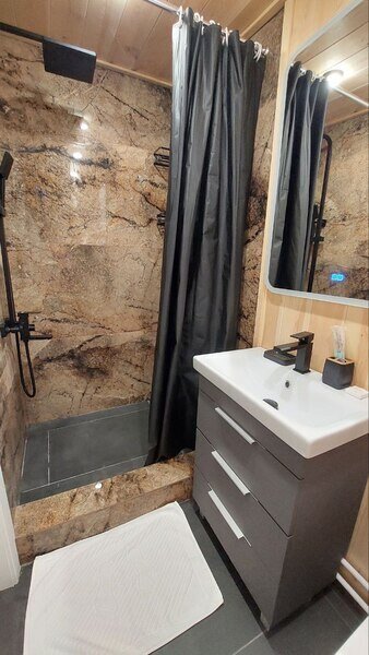 Дом оснащен всеми необходимыми удобствами для незабываемого отдыха, включая бытовую технику и средства гигиены. Одним из преимуществ является наличие собственной скважины, позволяющей использовать питьевую воду прямо из-под крана. Внутри дома также предусмотрен санузел с душем и новой сантехникой.