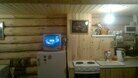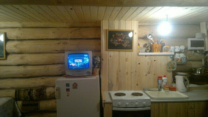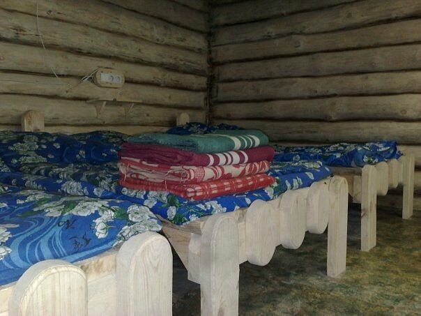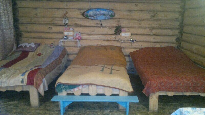В доме находятся 3 больших кровати,кухонная зона со столом(холодильник,печь,посуда,чайник,гор. и хол. вода,тв.),есть место для сушки шапок и рукавиц.