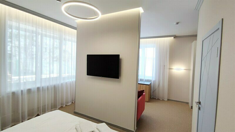 Комфортный номер в корпусе «Вилла Притомье». Гостиная, спальная зона, эксклюзивная мебель, современный санузел. Фотографии номеров могут отличаться.