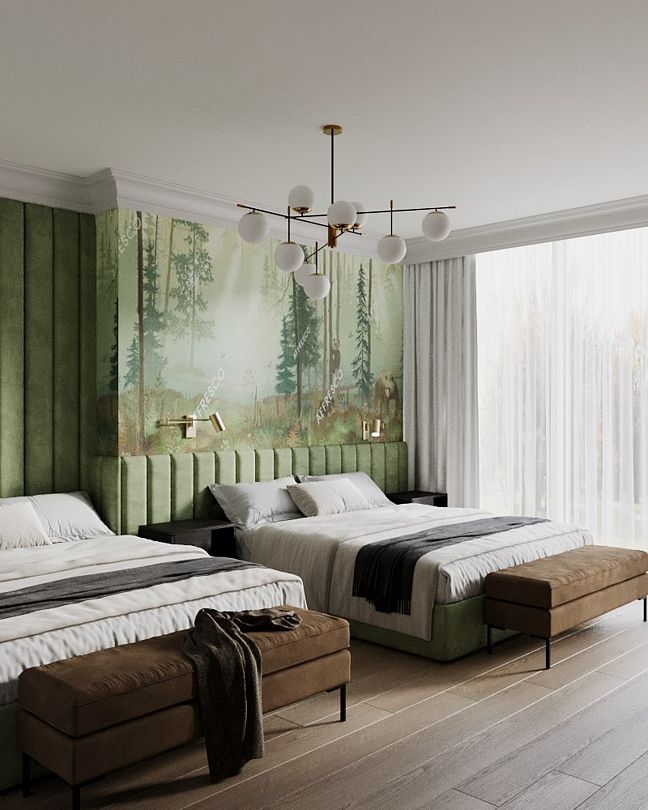 Две односпальные кровати, одна двуспальная кроватьВ гостиничном номере