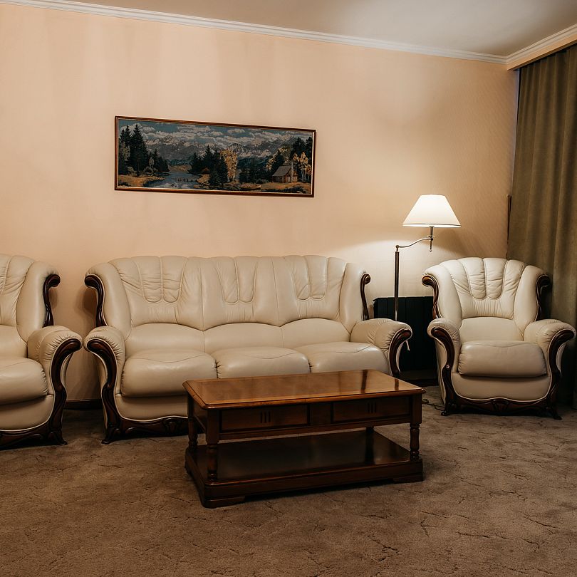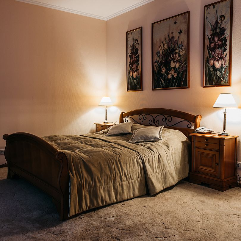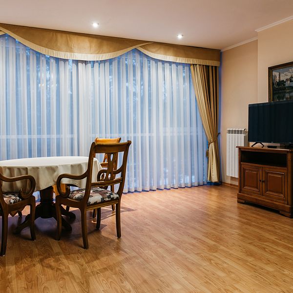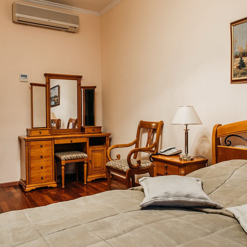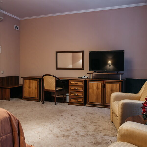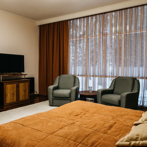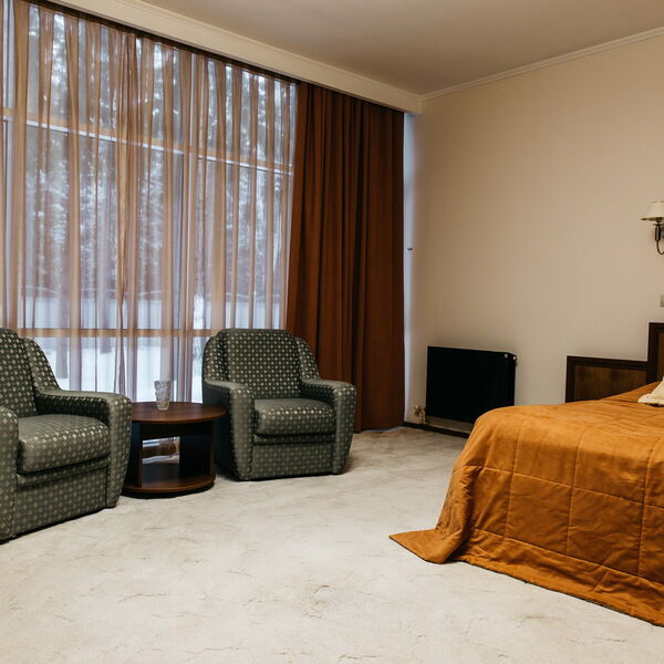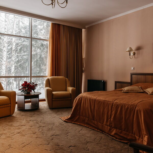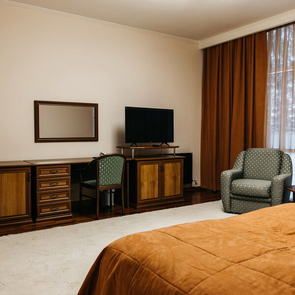 Номера «Люкс» главного корпуса выполнены в классическом стиле, оснащены всем необходимым для отдыха и бизнес-командировки. Фотографии номеров могут отличаться.