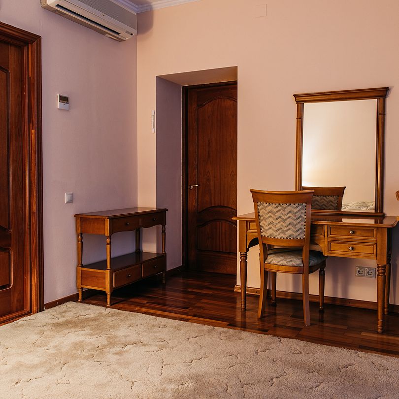 Номера «Люкс» VIP-корпуса выполнены в классическом стиле, оснащены всем необходимым для отдыха и бизнес-командировки. Фотографии номеров могут отличаться.