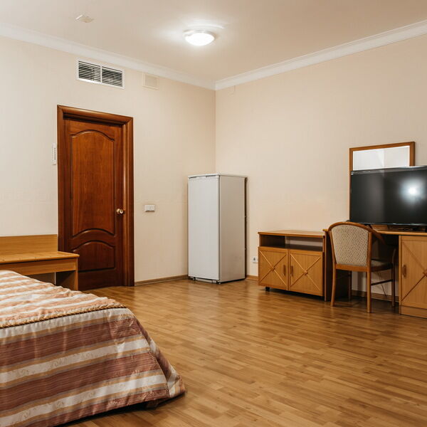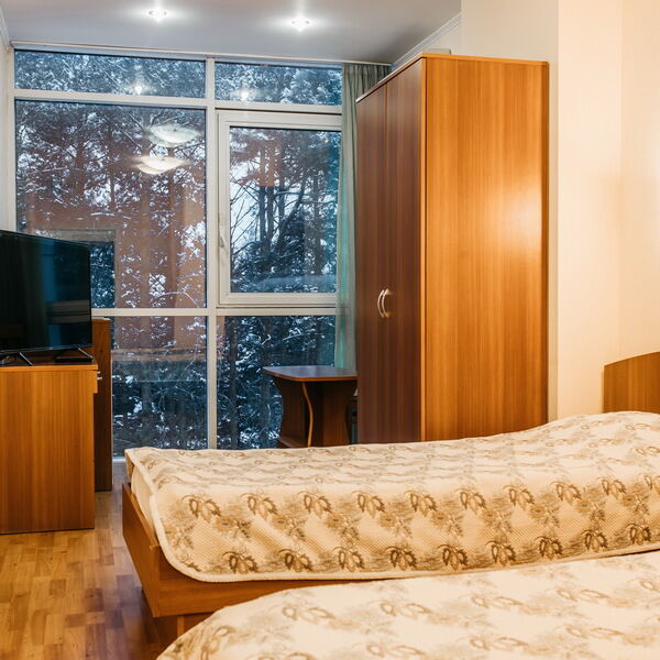 Стандартный номер в главном корпусе, с двумя односпальными кроватями. Санузел с душевой кабиной, телевизор, холодильник, чайник. Фотографии номеров могут отличаться.