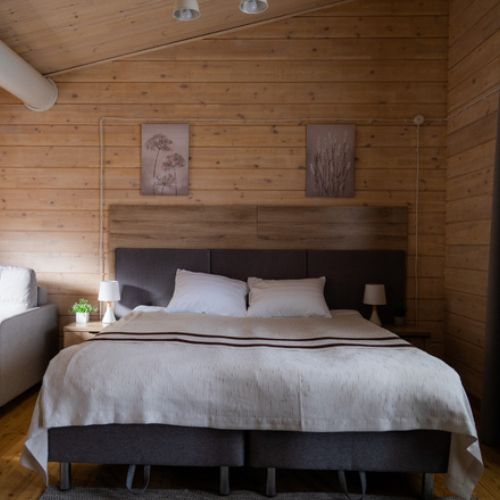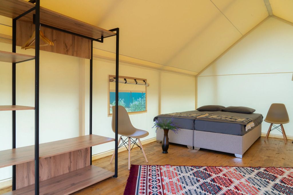 Двухместный Глэмпинг с видом на озеро двуспальная кровать