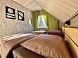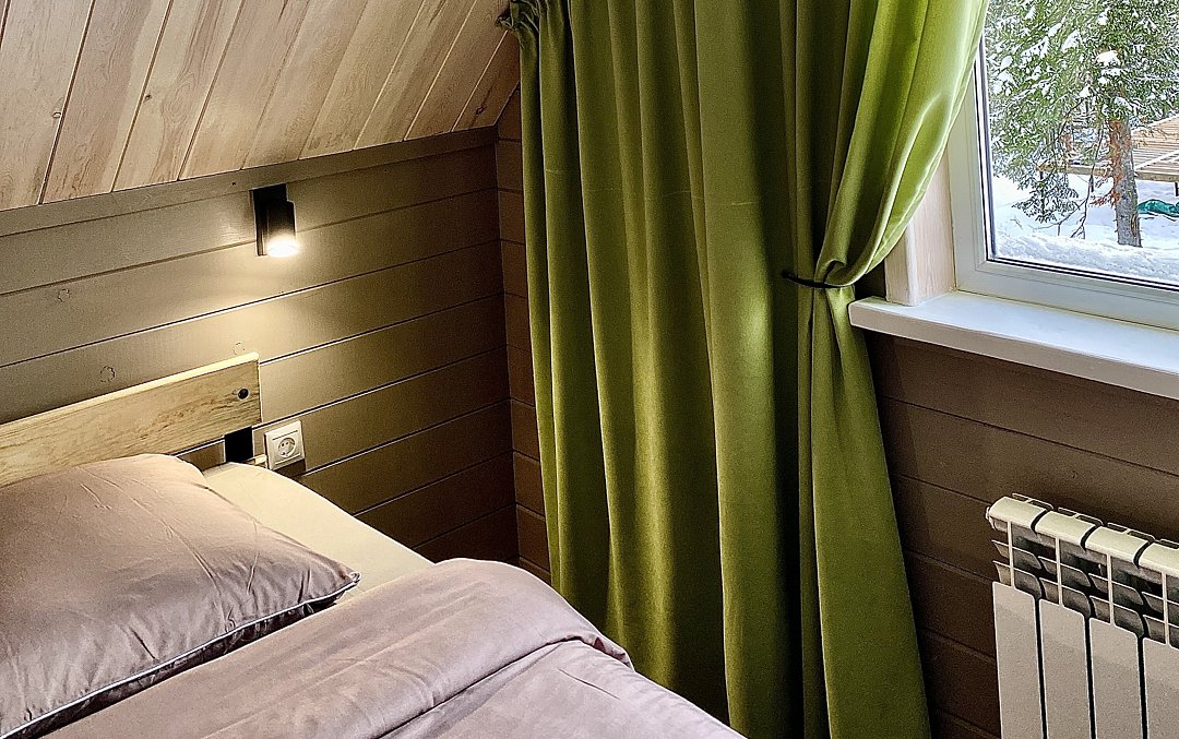Двухэтажное здание гостевого дома, выстроенное из кедрового бруса, расположено на благоустроенной территории на Рябиновой улице. Дом рассчитан на 13 человек, внутри - шесть спален, удобная гостиная и кухня. Коттедж оснащен всей современной бытовой техникой: есть микроволновка, посудомоечная машина, холодильник, ЖК-телевизор, фен, стиральная машина.