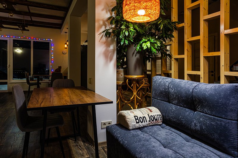 Семейный отдыхДостоинстваВсе отлично! Хозяйка очень приветлива, кот ее наимелейшее создание. Уже второй раз останавливаемся. Номер светлый, просторный, белье свежее. Кухонная зона очень нравится, вечерами классно посидеть там семьей или с друзьями. На кухне есть вся необходимая посуда, варочная поверхность, посудомоечная машина и кофемашина, ну как это может не радовать. Видно, что хозяйка заботится о комфорте гостей.