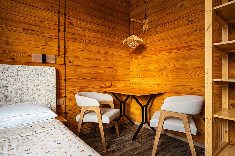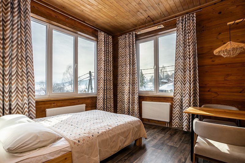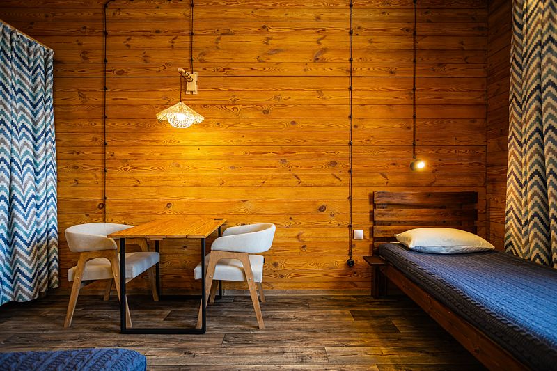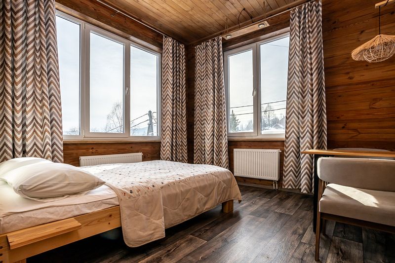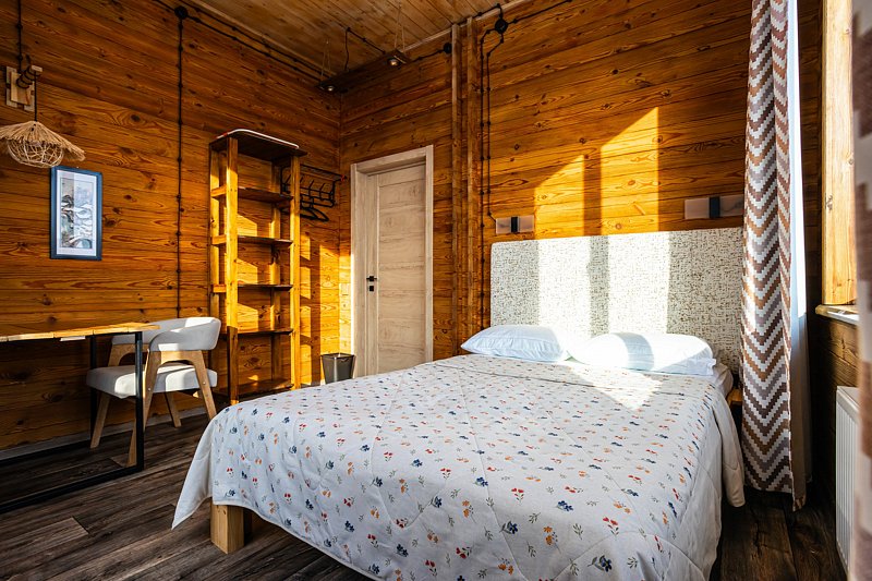 Гостевой дом рассчитан на 10 проживающих. Гости арендуют номера. Есть номера с двумя двуспальными или одной односпальной кроватью, можно оплатить дополнительное место в номере. Для гостей предусмотрено постельное бельё, полотенца.