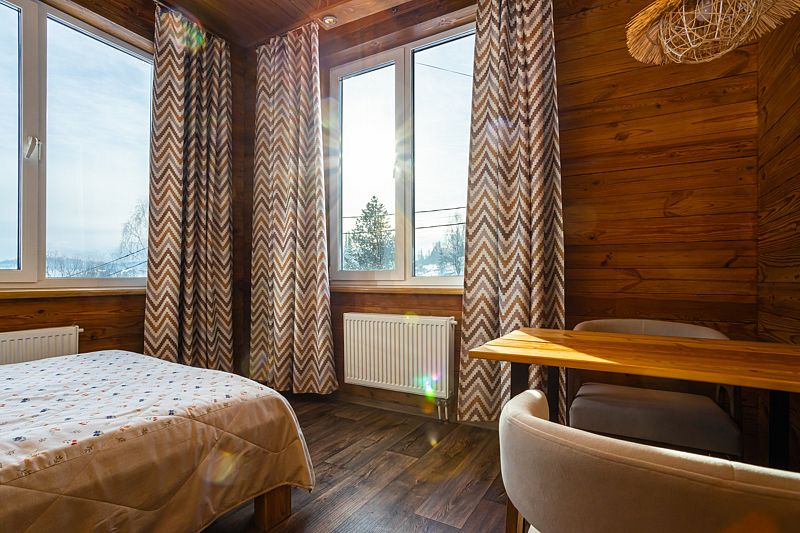 Гости могут остановиться в уютных спальнях, из которых открывается красивый вид на здешние просторы, и пользоваться всем, что предоставляет гостевой дом.