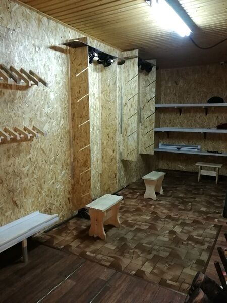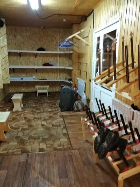 Большая и жаркая сушилка/лыжехранилище. Стойка для лыж, полки для бордов, для обуви. Скамейки. Есть розетка, можно подключить сушилку для ботинок, если привезли с собой. Выход на улицу (закрывается на ключ вечером).