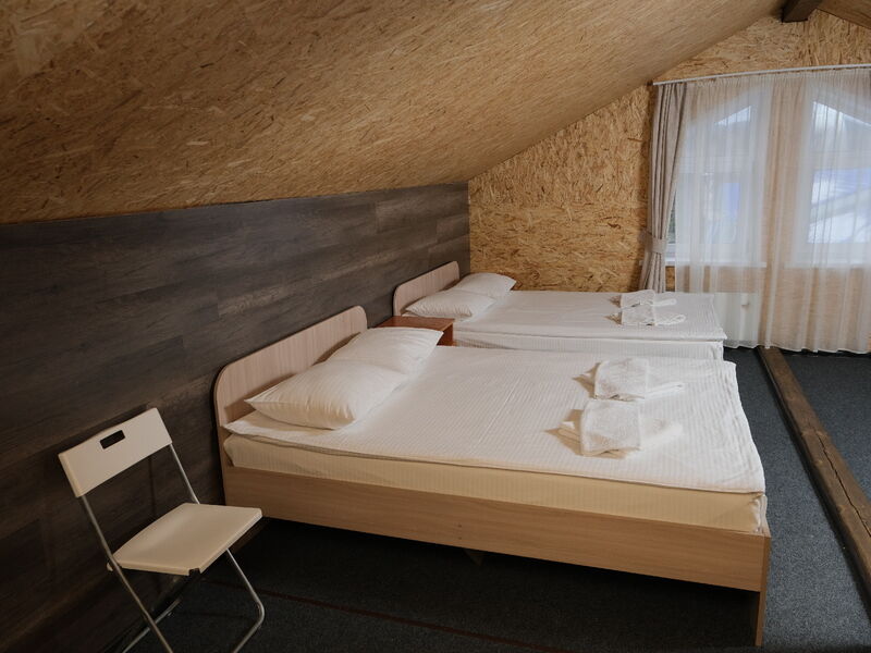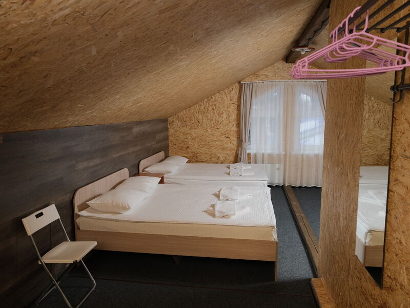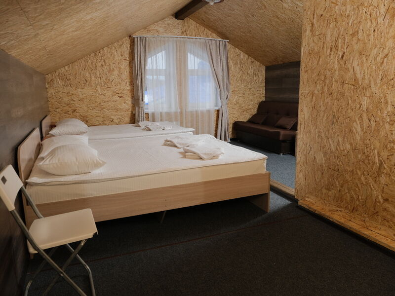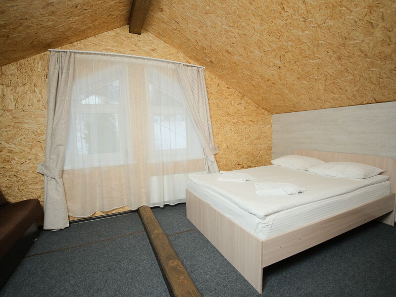 Гостиничный комплекс состоит из двух гостевых домов, один из них сделан из круглого бруса, экологически чистого материала. В распоряжении гостей номера разных категорий, в том числе и небольшие номера в мансарде. Везде предусмотрен санузел с душем и имеется телевизор.