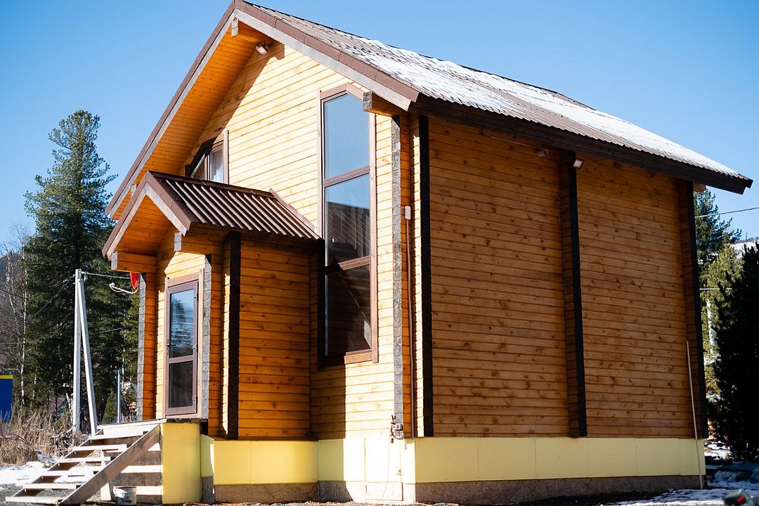 Дом занимает первый этаж двухэтажного дома. Вход отдельный. Экологичная отделка дома - пахнет деревом. В доме три спальни, кухня и санузел. спальные места 6 односпальных кроватей и раскладной диван. Кровати сдвигаются в полноценную двуспальную кровать. Большая парковка, пешая доступность до подъемников Скай Вэй и Подбрасывающего.В номере