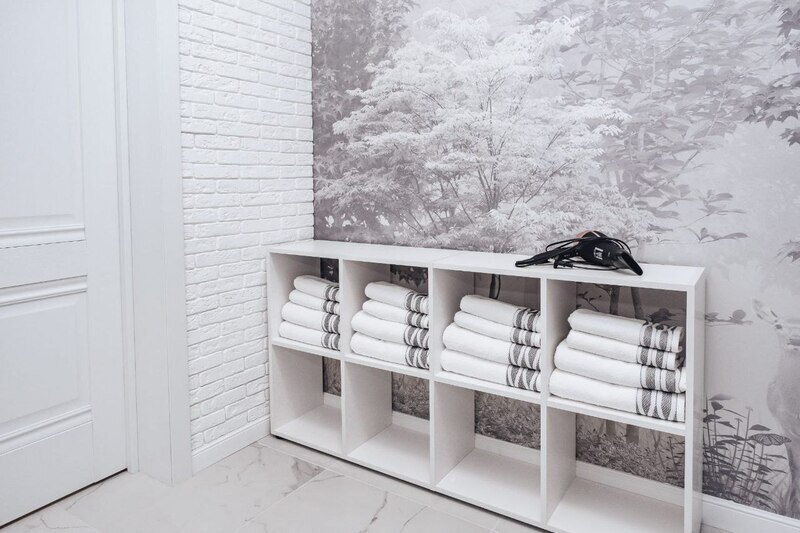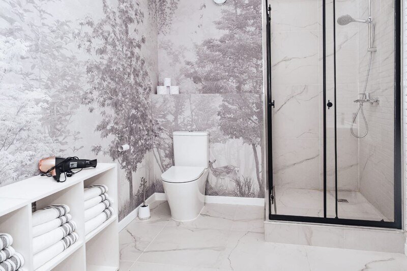 2 спальни, гостиная и большая ванная комната с душевой кабиной.
