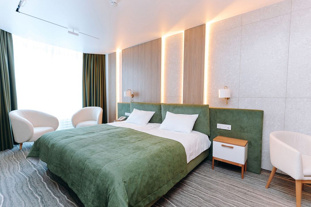 Реновированный номер «Люкс», введен в эксплуатацию после капитального ремонта в 2023 году. Номер выполнен в стильном дизайне с современным техническим оснащением.