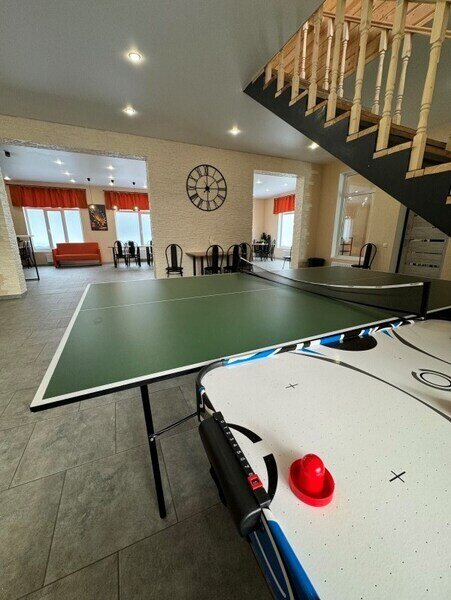 На территории базы есть сауна, банный чан, настольный теннис, аэрохоккей, бассейн, горка и мангал, на котором можно приготовить шашлыки, стейки и ароматный плов — казан и шампура предоставляются.