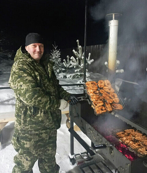На мангале одновременно можно приготовить очень вкусные шашлычки, стейки, ароматный плов! (Казан и шампура предоставляются).