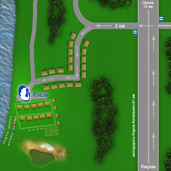 Испробуйте райской жизни в удаленном вятском уголке. База отдыха «Лебедь» имеет все необходимое для комфортабельного отдыха и занимательного досуга. Здесь каждый найдет занятие по вкусу: настольный теннис, бильярд, велосипеды, футбол, волейбол. А для ценителей - тренировочное поле для гольфа.