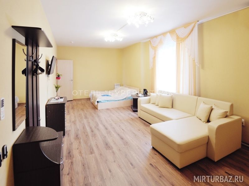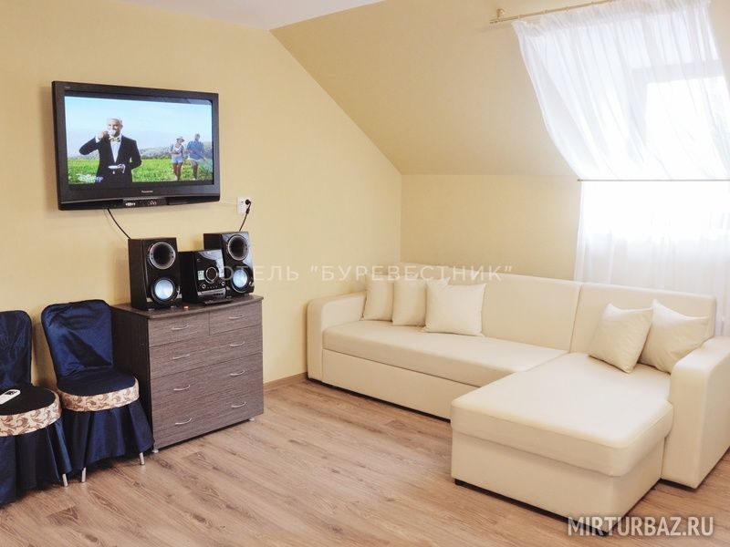 - 2 номера люкс (состоят из двух комнат, в них: двуспальная кровать, плазменный телевизор, прикроватная тумба, комод, кожаный диван, большой стол со стульями, душевая кабина, туалет)