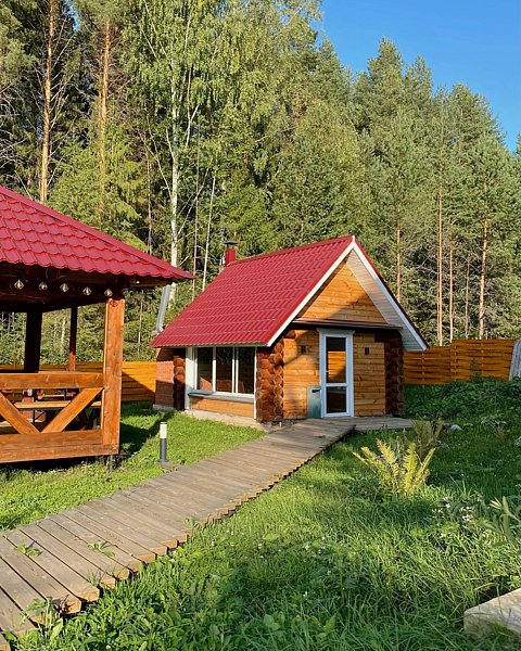 В вашем распоряжении три дома на 8, 13 и 15 спальных мест, две бани, рассчитанные на 6 и 8 человек, зоны барбекю, беседки, пруд с пирсом, детский городок, а также волейбольная и футбольная зоны.