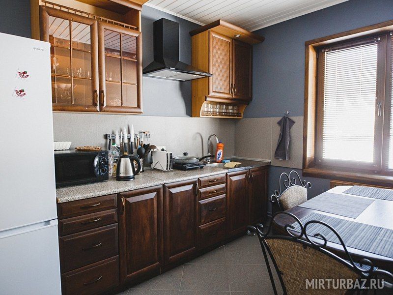 - оборудованная кухонная зона с холодильником и микроволновой печью