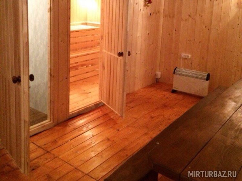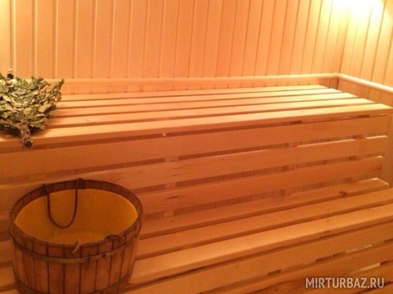 В отдельном стоящем доме расположилась русская банька, имеется большая комната отдыха, березовые веники.