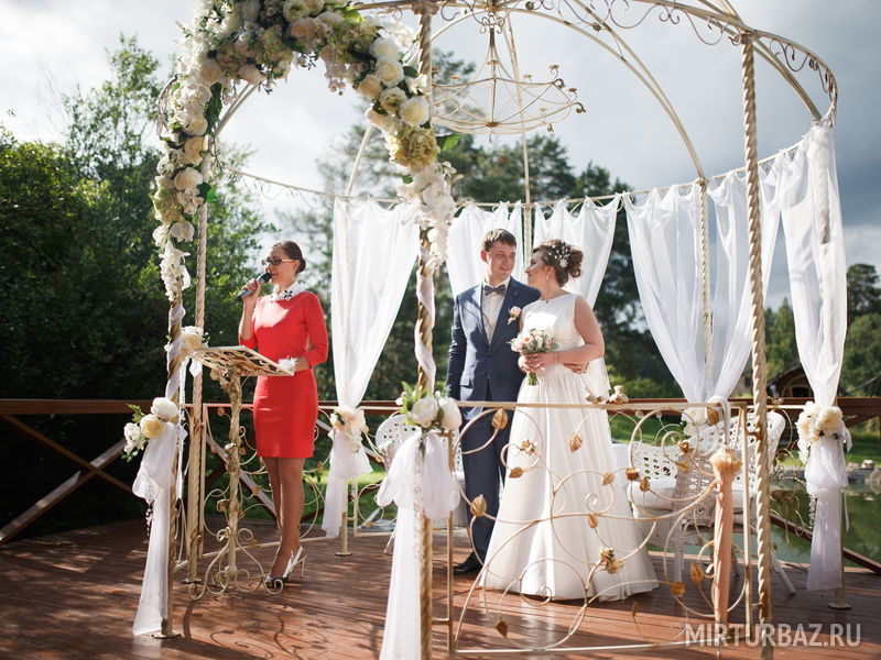 Регистрация проводится на летней террасе (патио) ресторана «Лесная сказка», на берегу декоративного пруда, среди сосен.