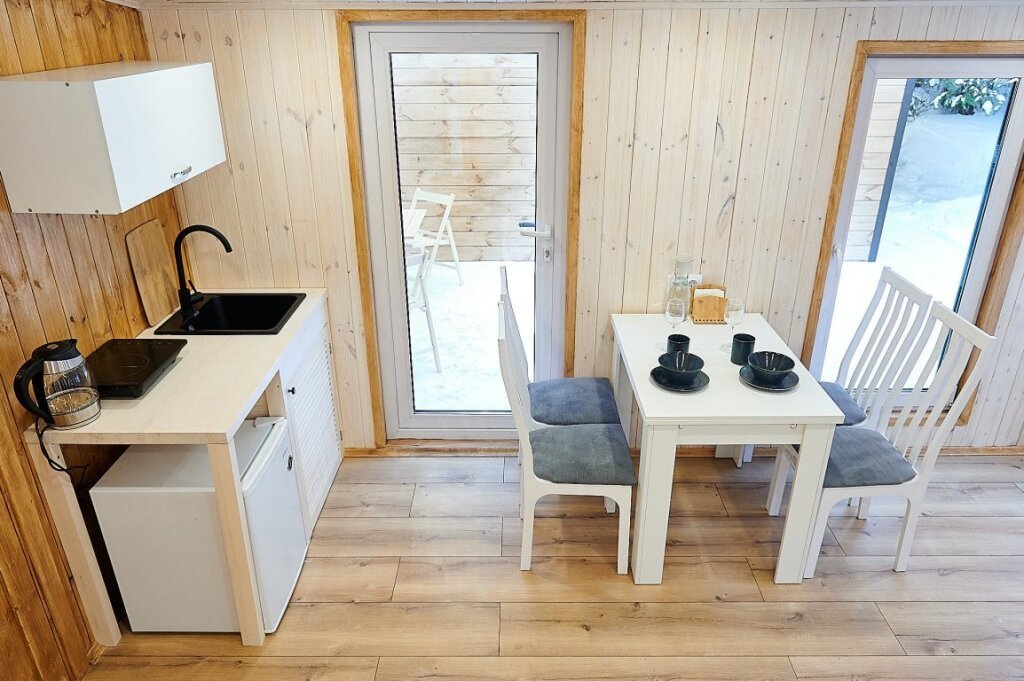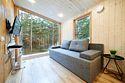 Идеальная чистота внутренних помещений без загрязнений и пыли подходит для уединённого отдыха. Здесь всегда чистое свежее белье. На территории есть качели и фотозоны. Панорамные окна открывают вид на сосновый лес. Гости могут арендовать баню, а также приобрести уголь, розжиг, халат и мягкие тапочки. Wi-Fi на территории поможет всегда оставаться на связи.