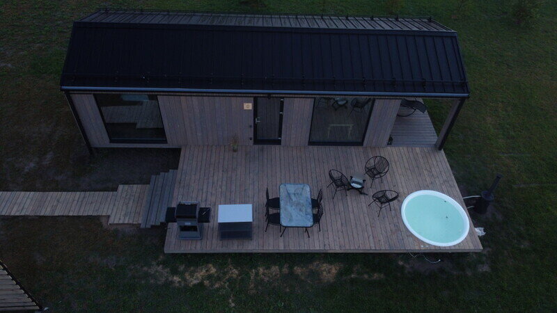 Пространство включает в себя спальню, кухонный уголок, уголок SPA, уютный камин, оборудованную гриль-зону и просторную террасу.