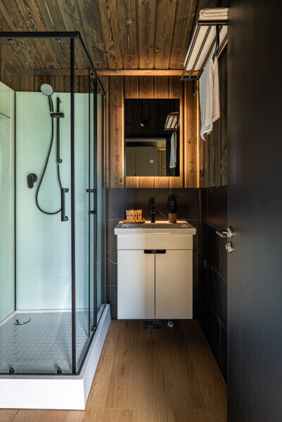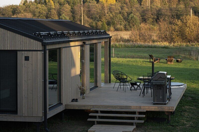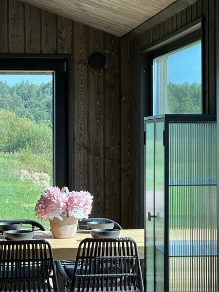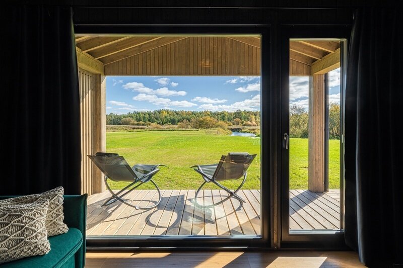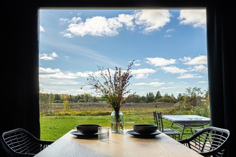 - панорамные окна, приоткрывающие вам великолепные виды на окружающий лес и живописную речку, чтобы каждое утро начиналось с вдохновения;