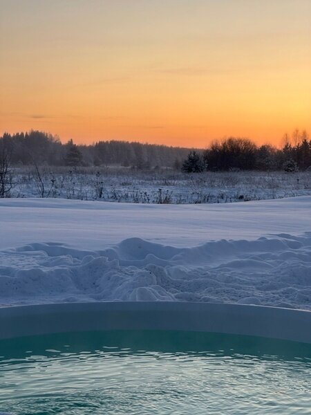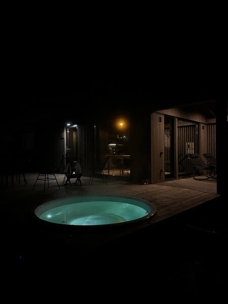 Вода нагревается печью до 40 градусов, поэтому купаться можно в любое время года. Добраться из дома до горячего джакузи можно с комфортом, так как она располагается прямо на террасе дома и вам предлагаютс