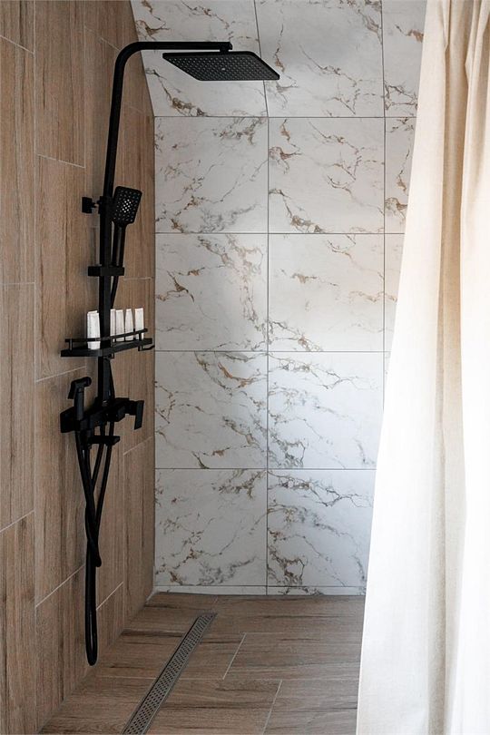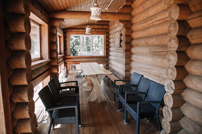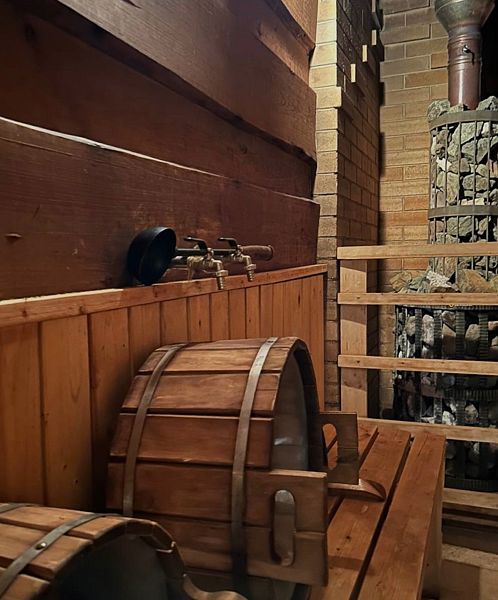 В бане две парные зоны: русская (на дровах) и финская (электро). Также в бане есть холодная купель, лаунж зона на веранде с панорамными окнами. Заварной чай с травами и мёд предложат каждому гостю.
