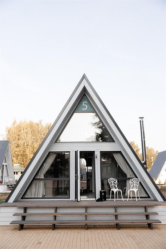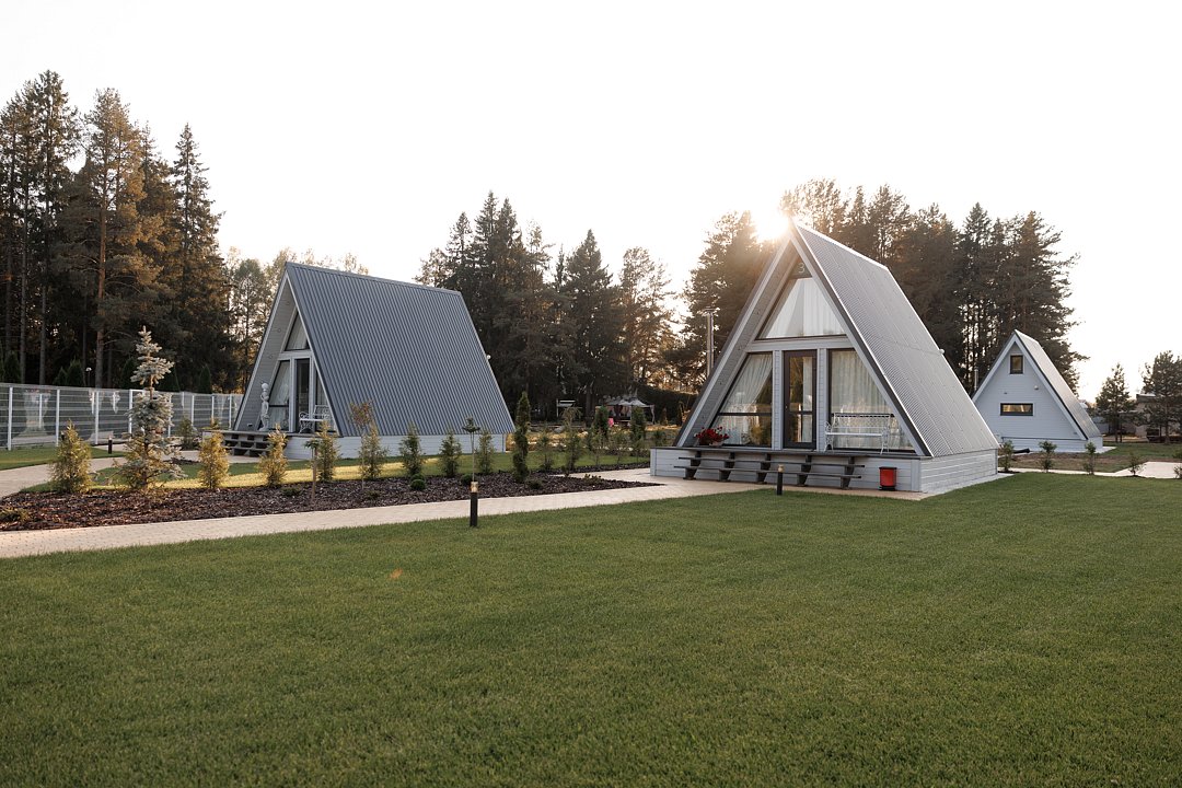 В вашем распоряжении будут стильные треугольные домики в формате A-FRAME, а также комфортные гостевые дома, способные разместить до 10 человек. Все варианты жилья оснащены всем необходимым для приятного времяпрепровождения.