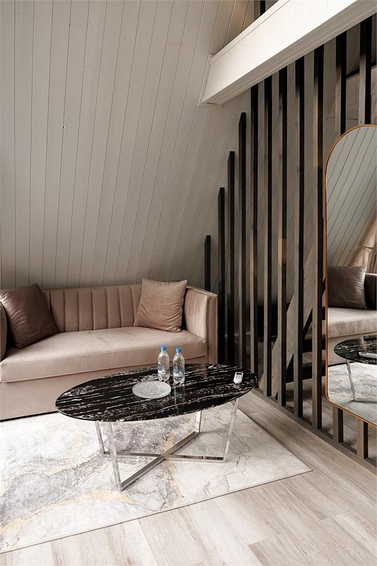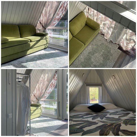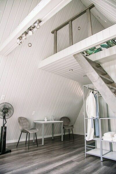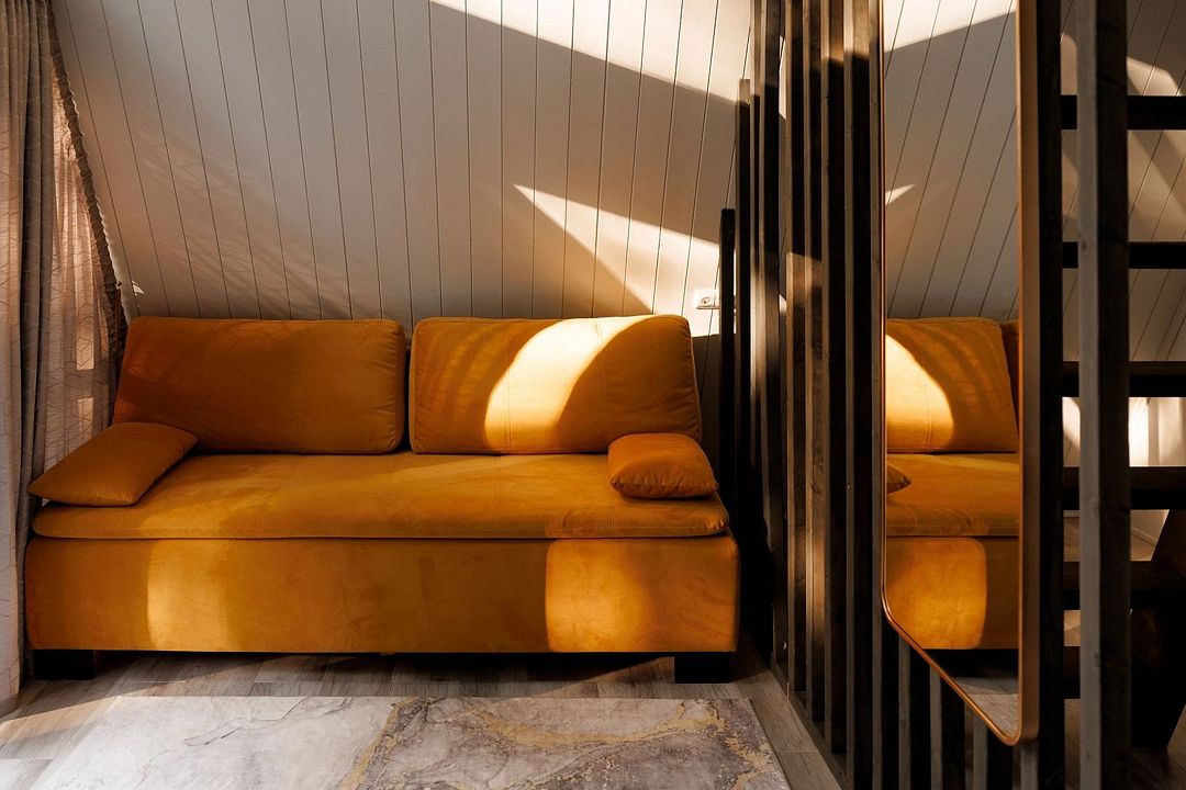 Одна двуспальная кровать, одна диван-кроватьВ а-фрейме