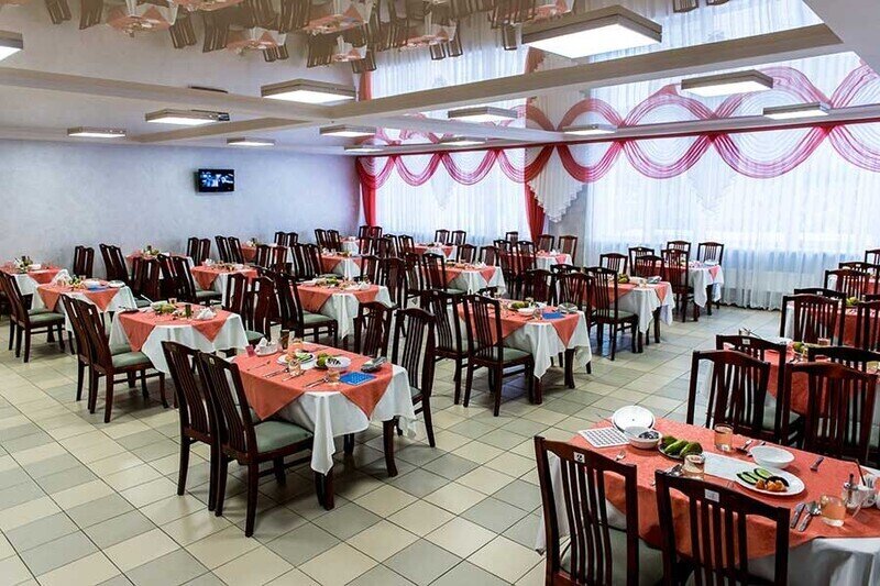 В санатории располагается скромное кафе, где посетители могут насладиться чашечкой ароматного чая или вкусным кофе, а также насытиться легким перекусом.