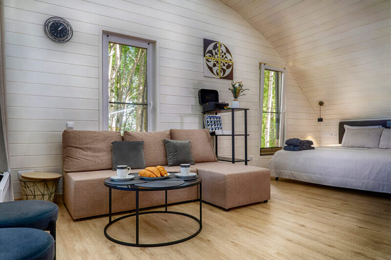 - 2 дополнительных спальных места на двуспальном диване в общем холле (за дополнительную плату)