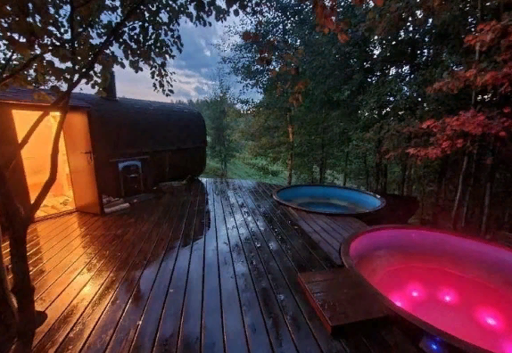Инфраструктура: зона отдыхаМинимальное время аренды: 3 часаУникальная кедровая квадро-баня на дровах с раздельным пространством: парная + комната отдыха. Пространство имеет свою собственную террасу с двумя бочками Фурако под открытым небом с подсветкой.В стоимость аренды входит:- бочки Фурако;