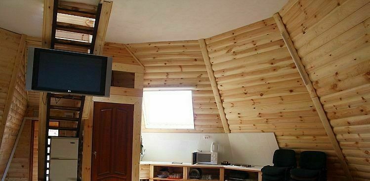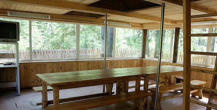 Двухэтажный дом в форме конуса, как вигвам индейцев, на большую компанию от 20 до 50 человек. Удобный для отдыха без ночевки или для проведения семинаров и презентаций. Большое оборудованное мангальное место с крышей, с большим столом и скамейками.