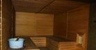 Двухэтажный домик с панорамным остеклением первого этажа. На 1 этаже: кухня и столовая, баня. На 2 этаже: комната с двуспальной кроватью, проходная комната с двуспальным диваном.Оборудованное мангальное место с удобным большим столом и скамейками.