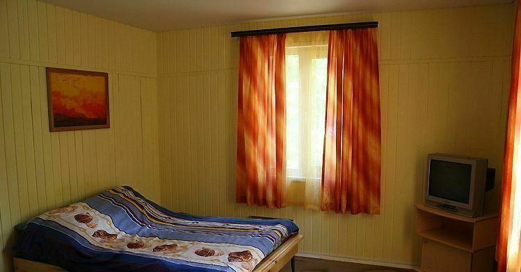 Одноэтажный дом с пятью номерами гостиничного типа.Есть отдельные двухместные и одноместные номера. Рядом с домом большое оборудованное мангальное место с столиками и скамейками, которое при желании легко трансформируется в танцпол на открытом воздухе.