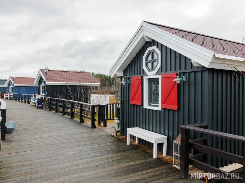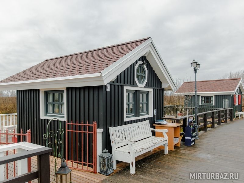 Теплые домики «Амстел» расположены с видом на пруд и рассчитаны на 10 чел, оборудованы санузлами, диваном, столом,ТВ, печью-камином, барбекю на террасе.