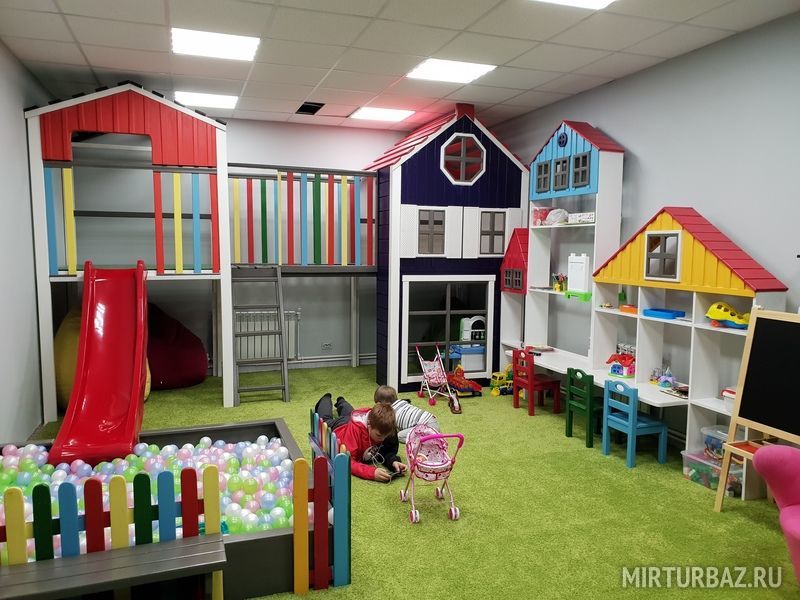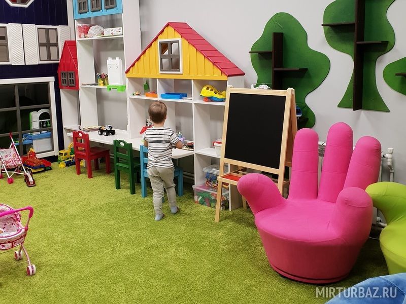 Уютная детская игровая комната с мягким ковровым покрытием и большим количеством активностей порадует Ваших деток и не даст им скучать.